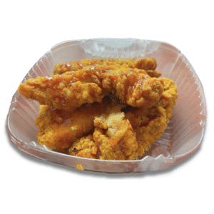 Savor a four-piece chicken strip meal paired with your choice of either BBQ or Spicy Honey sauce.